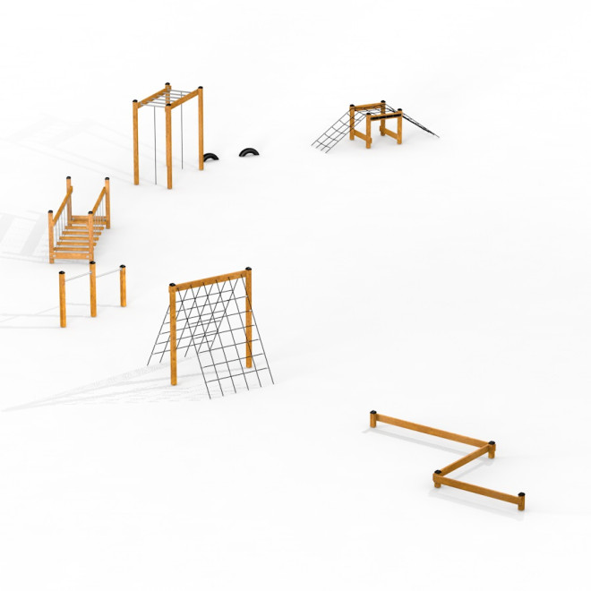 Αυτό το διασκεδαστικό και λειτουργικό μονοπάτι γυμναστικής ενθαρρύνει την κινητικότητα και την ανάπτυξη δεξιοτήτων, ενσωματώνοντας φυσικά υλικά που εναρμονίζονται με το περιβάλλον, ιδανικό για πάρκα, σχολεία και κοινόχρηστους υπαίθριους χώρους.