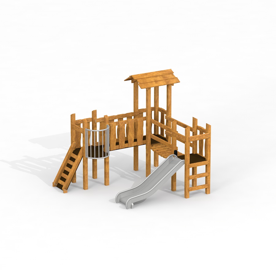 Κατασκευασμένο από ξύλο λάρτς, ανοξείδωτο ατσάλι, γαλβανισμένο ατσάλι και ανθεκτικό, αδιάβροχο κόντρα πλακέ με αντιολισθητική επιφάνεια, το Fortress II εξασφαλίζει αντοχή και σταθερότητα, ενώ παράλληλα προσφέρει φυσική αισθητική που εναρμονίζεται με κάθε εξωτερικό χώρο.