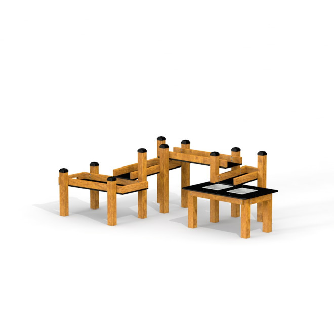 Κατασκευασμένο από ξύλο λάρτς, ανοξείδωτο ατσάλι, ανακυκλωμένο HDPE και PE, το προϊόν συνδυάζει ανθεκτικότητα και φιλικότητα προς το περιβάλλον, εξασφαλίζοντας μακροχρόνια χρήση και εύκολη συντήρηση.